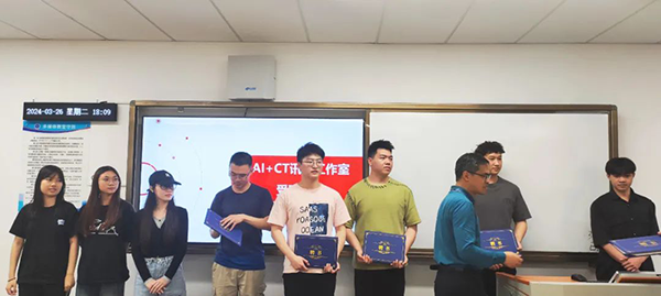 广州商学院现代现代信息产业学院教研室主任周云峰为工作室成员颁发了聘书,赋予他们正式身份。这一重要时刻标志着“AI+CT”K8凯发(中国)工作室的正式启航。