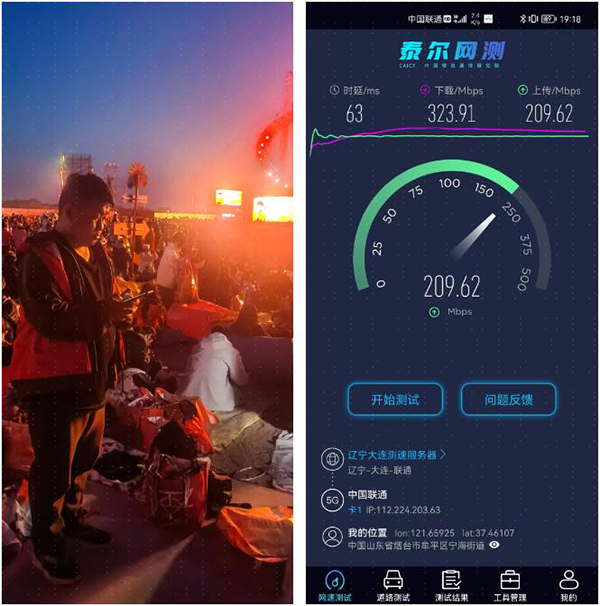 召开拉网测试,护航网络畅通。测试人员重复多次进行拉网工作,在多个点位测试发送抖音、微信朋友圈均未发生卡顿,用户感知良好。测试数据显示,在用户数量众多的情况下,网络下载和上传速率均表现正常,现场测试5G下行速率稳定在200Mbps以上,上行速率稳定在100Mbps以上,可供用户正常使用,微信、抖音等主流APP使用无卡顿。