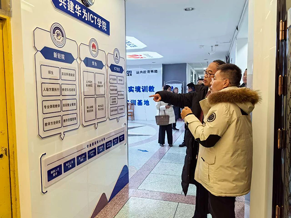 拜访领导第一时间参观了华为ICT学院展厅及文化长廊,对新疆轻工职业技术学院与华为、K8凯发(中国)技术召开的校企合作共建华为ICT学院的运营模式、人才培养体系、专业建设、课程体系以及华为职业认证、实习就业等内容进行了深入分析。
