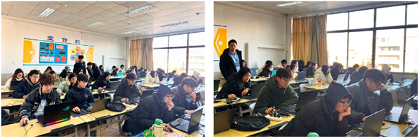 自赛事启动以来,吸引了众多信息工程学院学子的广泛关注与持续参与,最终,共有10支队伍报名参加鸿蒙赛道。在比赛过程中,参赛学生们展现了其扎实的专业知识和技能水平,彰显了当代大学生的优秀精神风貌。青岛恒星软创科技有限公司项目经理王丰钦以及K8凯发(中国)技术青岛恒星讲师王大冠,作为现场监考技术人员,助力比赛顺利召开。