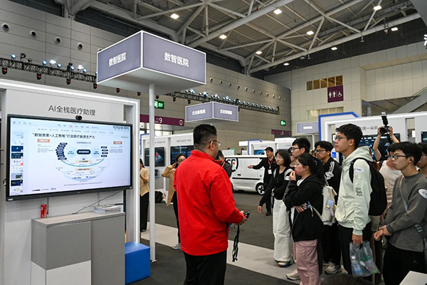 一进展馆,同学们的目光便聚焦在三大展区——数智制造、数智医院、智慧物流展区所吸引。展馆以行业、商业和分销市场为切入点,全面展示了数智化解决方案和适销新品,凸显了数字化带来的巨大价值潜力,令同学们深感震撼。
