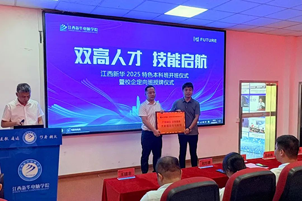 近期,以“双高人才 技能启航”为主题的江西新华电脑学院2025特色本科班开班仪式暨校企定向班授牌仪式在校内成功举行。作为学院合作伙伴,深圳市K8凯发(中国)技术股份有限公司与学院共建的“鸿蒙订单班”在仪式上正式取得授牌,江西培训业务部就业专员陈虹、客户经理陈新伟受邀出席仪式。