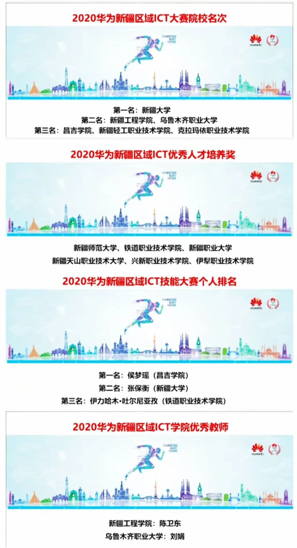 本次双选会还评选出了此次参加ICT技能大赛表现优异的学校,老师和学生并由部长程广华在会议上宣布。他们分别是: