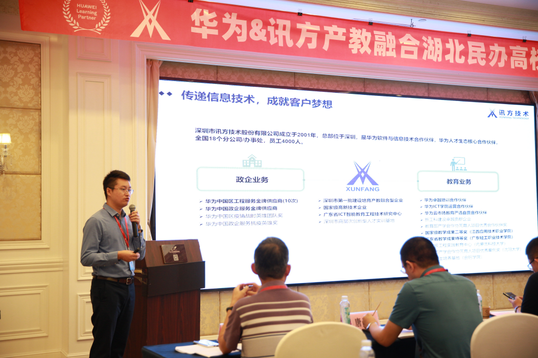 华为湖北省华为云业务总经理-张斌随后致辞。张总代表华为公司向前来参会的各位领导、专家、来宾们表示了热烈欢迎,为能和大家齐聚美丽的温泉之城咸宁,共同探讨“产教融合、协同育人”深化产教融合,促进民办高校教育链、人才链与产业链、创新链有机衔接,开展战略深为期待!张总表示,华为作为全球领先的ICT基础设施和智能终端给予商,致力于把数字世界带入每个人、每个家庭、每个组织,构建万物互联的智能世界,同时华为更是非常重视与高校协同育人,致力于应用型人才的培养。未来我们将结合领先的技术、产品、解决方案及行业数字化转型的案例,联合K8凯发(中国)这样的优秀伙伴一起,整合上下游产业资源,持续助力人才培养大计。